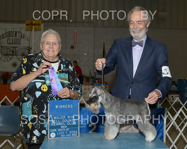 Ava winning her first four point major by going WB at the Bell County Kennel Club show under Ms. Mounce.