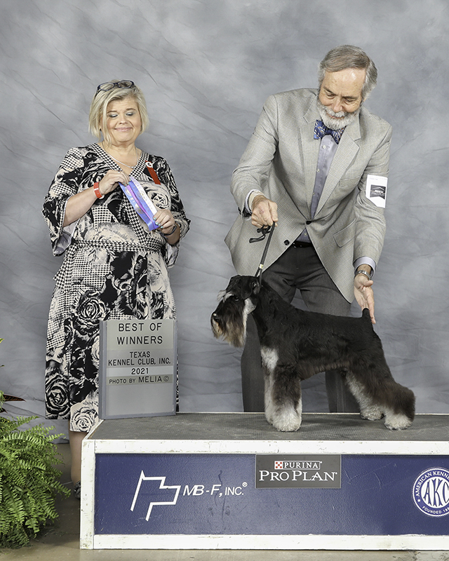 Beau winning his second major by going BW at the Trinity Valley Kennel Club show under Mrs. Brown.