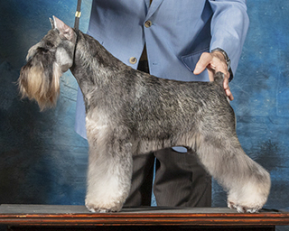 Boyd finished in style in two weekends from the bred-by class with four majors including three five-pointers. He is the first champion for his sire and the fourth for his dam. He finished with a breed win over top specials including the #1 ranked Miniature Schnauzer and already has multiple group placements. He was whelped and raised by co-breeder and co-owner Mary Jo Larsen.