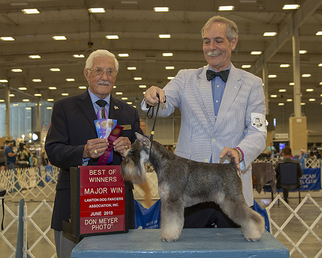 Boyd winning a major his first time in the ring at the Oklahoma City Kennel Club show under Dr. Keating.