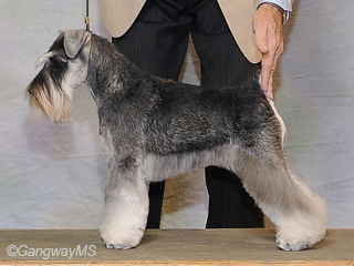 Dash finished from the puppy and bred-by classes. She is our third natural-earred champion. She is the eighth champion for her dam Ch. Gangway's Jacqueminot Jumpstart and the twelvth for her sire Ch. Repetition's Its A Rap. She is Gangway's 35th champion. She was bred, owned and shown by Bill Brown and Mary Jo Larsen.