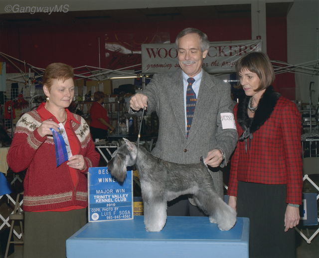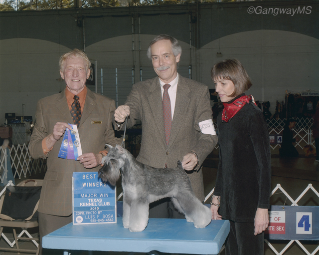 Duke winning his second major by going WD and BW under Dr. Harris at the Texas Kennel Club Show.