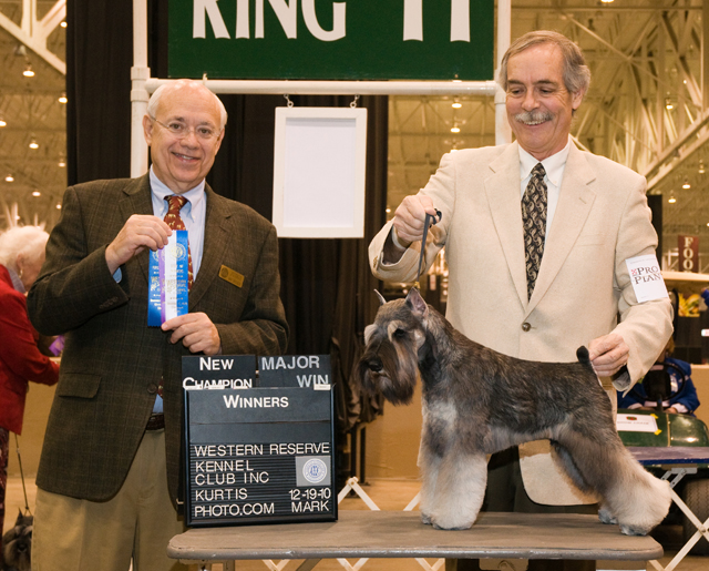 Duke winning his fifth major to complete his championship at the Western Reserve Kennel Club show under Mr. Ron Mennaker, Chairman of the AKC.