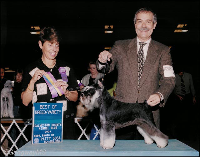 Gracie winning BOB over specials at Houston under Mrs. Goldberg