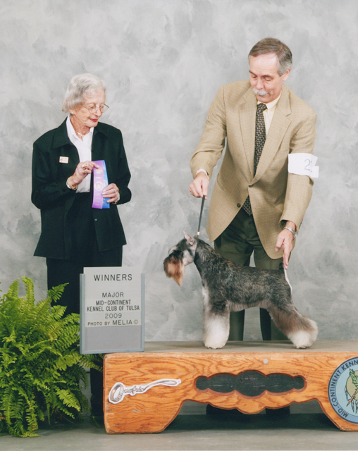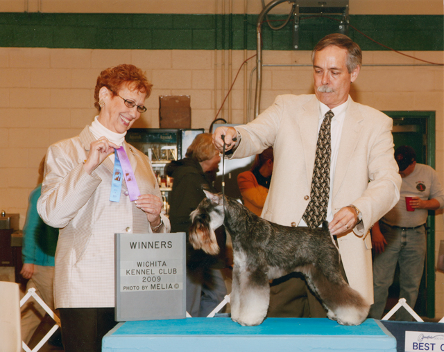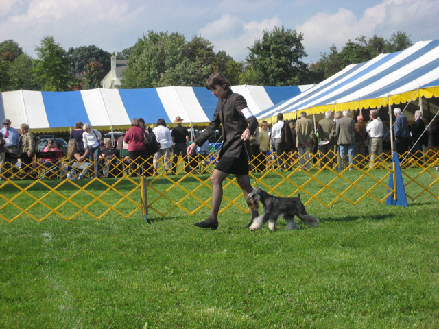 Nones with Mary Jo Larsen moving around the ring on the way to taking BOS at the 2009 Devon show.