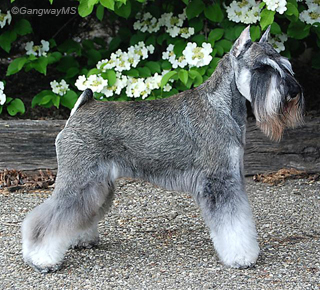 Tipper finished handily as a puppy on one coat from the bred-by class with four bests-of-breed, and two group place-ments. He is the eleventh champion for his dam and the fourteenth for his sire. He was shown to his championship by his co-breeder and co-owner Cheryl Coffman. Specialed sparingly on two coats he won numerous additional bests-of-breed and group placements including two G1's and is currently the #15 ranked Miniature Schnauzer.